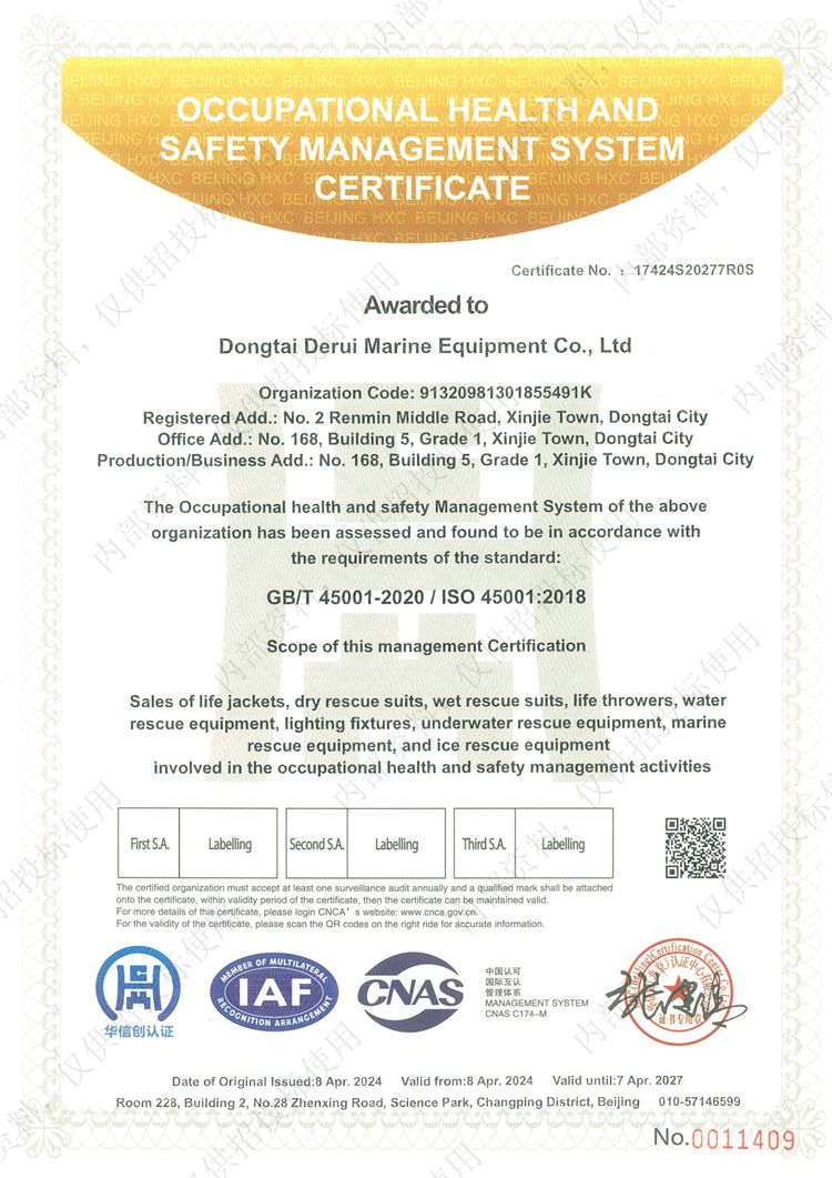 職業(yè)健康安全管理體系認證證書